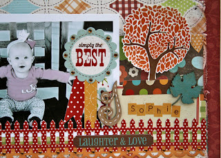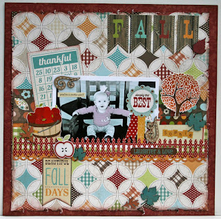 My inspiration for this layout was a photo of my sweet great niece, Sophie, who is experiencing her very first Fall. Everything is new to her now, but soon she will be playing in the falling leaves and picking apples.