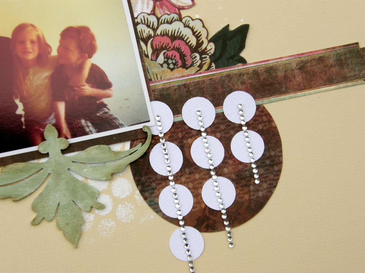 I used circles punched from white cardstock to form vertical lines, then layered Sleek Strips over the dots for a little bit of bling that doesn't outshine the rest of the layout.