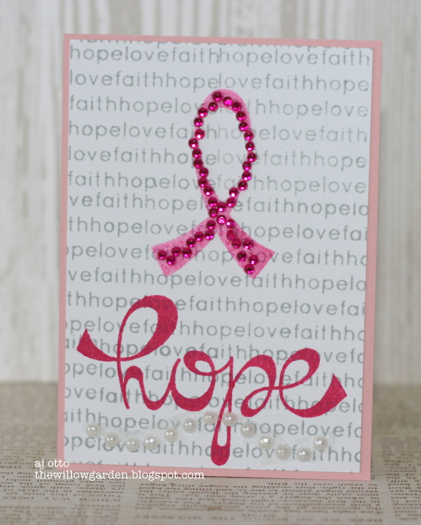 I was so very excited to be able to create ATC's for todays big event. I was diganosed just 9 short months ago with Breast Cancer. I have only finished my treatment about 6 weeks ago. I obviously hold this subject matter near and dear to my heart. I have had *the* most amazing and supportive friends and crafters send me sooooo many cards through out my fight, and and have been looking forward to the opportunity to give back.