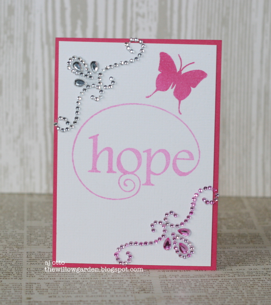 For my last ATC, I used the Avocado Arts set My Wish For You and Nina's Beautiful Bling Borders- Fancy That! *I colored the bottom right one with a copic marker to make it pink. ;) (You can also color your white pearls to match any project in case you can't find the color you want on the W2S site.)