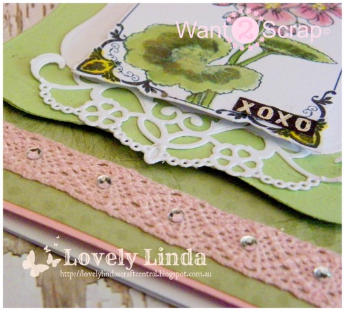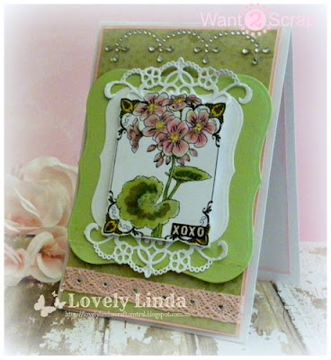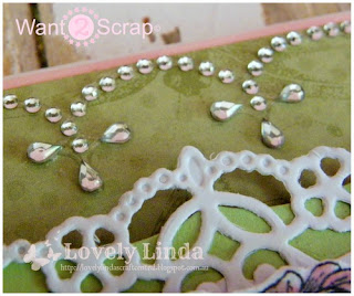 Hello it is Linda here with a card for you using one of the beautiful Want2Scrap Bling Borders - how pretty they are and can add so much to a card. Combine this with some beautiful rhinestones and it does not get much better than this!