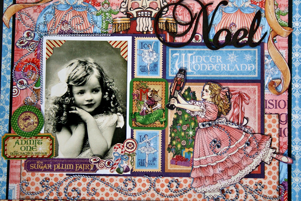 The beautiful paper collection, "Nutcracker Sweet", from Graphic 45, combined with Want2Scrap bling and chipboard, was just perfect to celebrate my love of The Nutcracker.