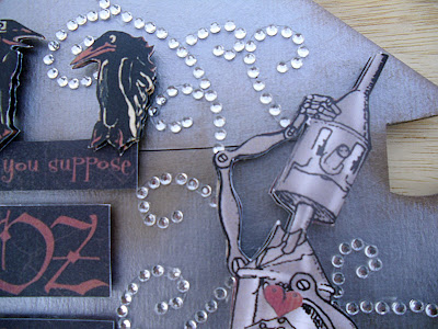 Nestabling™ Fancy Tags Three Silver Rhinestones with a little airbrushing to my Waltzingmouse stamped sentiment. I added a Baby Red Rhinestones to the Tin Man's chest and some Swirls, Finesse Silver Rhinestones to finish the page.