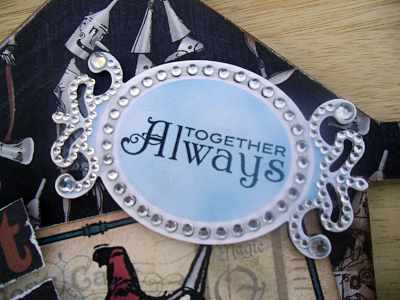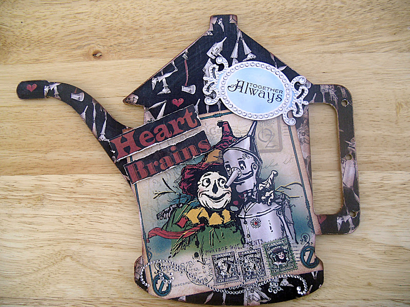 Want2Scrap© and Graphic 45 are a perfect match when it comes to creating these amazing chipboard album, for this album I used The Magic of Oz paper collection, it was perfect for the oil can album. after all who doesn't just love The Wizard of Oz? On the front of the album I used the Funky Swirls Silver Rhinestones and the 72 count Black Pearls.