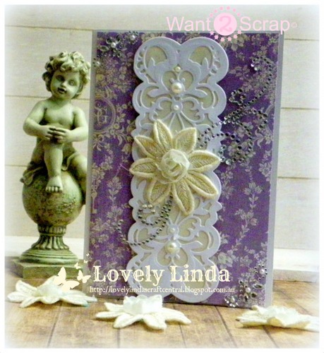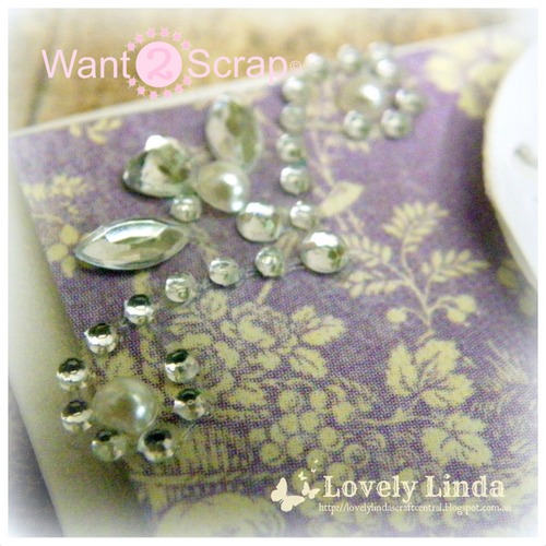 Hello Want2Scrap fans - it is Linda here, sharing a card using Want2Scrap pearls and bling - who said you can't combine them - I love the look!