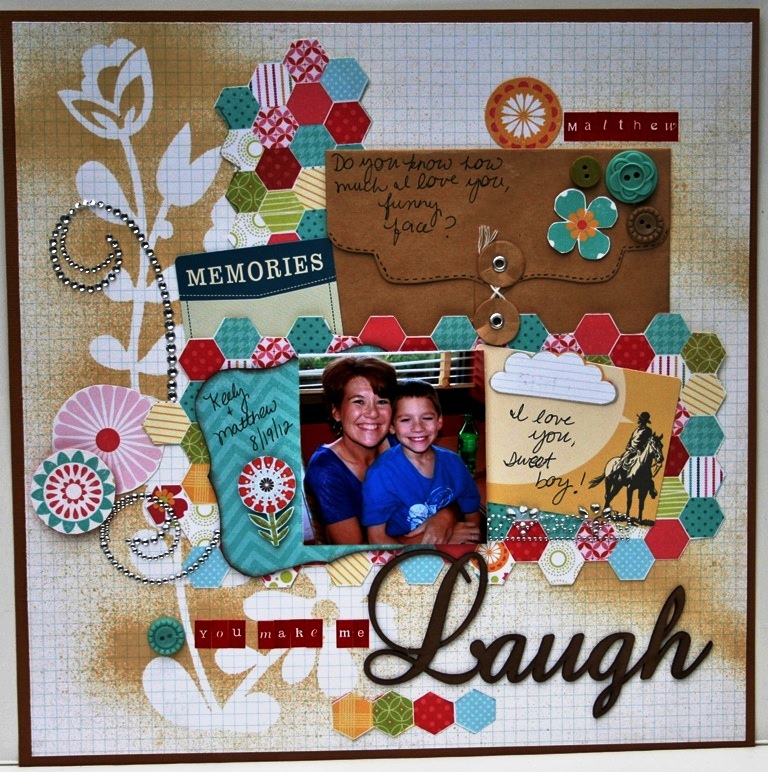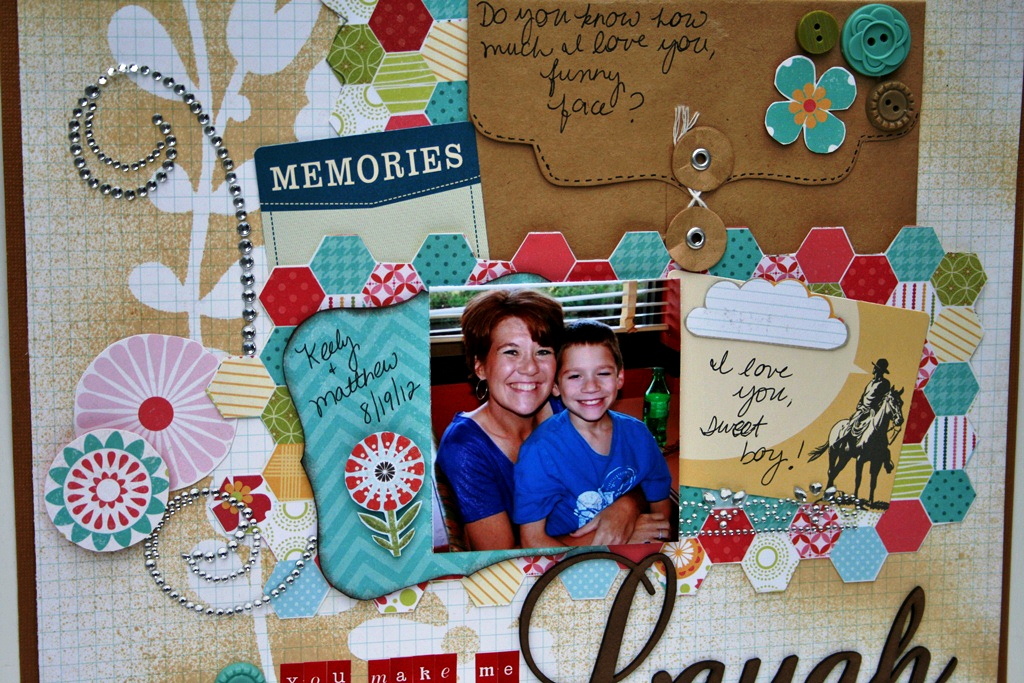 I had so much fun creating this layout. It's a bit chaotic with lots of color and reminds me of childhood. It was inspired by my relationship with my sweet nephew, Matthew. I included lots of texture with chipboard and bling by Want2Scrap.